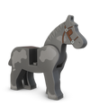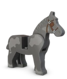 The Mill Village horse was introduced in 2011 in the set 7189 Mill Village Raid, and is, so far, exclusive to it. It is dark grey, has blinders printed on its head, and some light grey spots. It is the only old horse that isn't mostly brown, black or white.