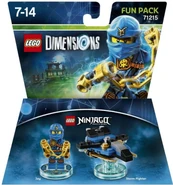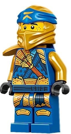 Jay also received a "Spinjitzu Ninja Training" variant, which saw the Forbidden Spinjitzu hood return in light blue with translucent yellow flames. Both arms are a matching blue, and the head is translucent yellow as well. The torso of the figure featured exclusive printing, but the legs are the same as the standard Core figure.