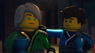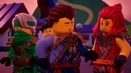 In the eighth episode "Once Bitten, Twice Shy", he takes Nya out on a date for the first time. But it doesn't go at all as planned. He begins to turn into a snake and is too shy to tell Nya. Then Nya is chained up by Pythor on a roller coaster leading to a circle of fire. He reaches his true potential when Nya kisses him (Which makes his heart rate go up rapidly, repelling the Fangpyre Venom) and he discovers that he just needs to be who he is.[7]