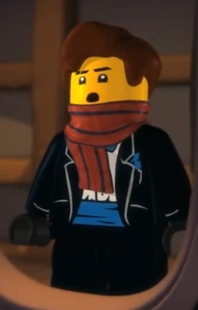 In conjunction with The LEGO Ninjago Movie, Jay received three new variants. One of these was a civilian version, featuring a new tousled hairpiece and new face printing for the character. This Jay sported tan pants, a light blue jacket, and an orange scarf piece.