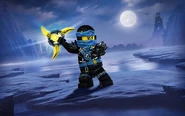 At the Caves of Despair, location of the Scythe of Quakes, after the scythe was recovered by the ninjas, they are attacked by an army of Skullkins led by Samukai, the king of the underworld. Jay notices the enemies to be just like the training course, and after going through the motions Wu taught him, he summoned a tornado of lightning corresponding with his element. In other words: he performed spinjitzu, followed by the others. Samukai and his legion retreat, as a dragon protecting the Scythe appeared behind the ninja. In desperation, Kai uses the scythe, despite Wu's instruction not to use the weapon's power, as no mortal could handle it. A rift appears in the cave ceiling, and the ninja manage to escape.[2] As the ninja are heading to the shurikens of ice, Wu teaches them the most powerful move in spinjitzu: the Tornado of Creation. The boat arrives, crashing into the island, and the ninja enter the frozen plains. Jay and the rest of the ninjas recovered the Shurikens of Ice. Next, At the Floating Ruins, they climb a giant nunchuck to the nunchucks of lightning, jumping down to escape the lightning dragon. The four use special inventions made by Jay, who made backpacks that spawn wings. The ninja are at such a high altitude that they are able to fly to all the way to the Forest of Tranquility, the location of the Sword of Fire. The group then go to sleep in the forest. Kai leaves while the others are asleep as he is under the impression that his sister, Nya is in the forest. Wu later leaves to follow Kai, while Jay, Zane, and Cole are still in slumber. Samukai and the army of Skullkins then arrive, steal three of the golden weapons, and tie the remaining members of the group to a tree. Jay grabs General Nuckal's sword and cuts the rope while the skullkins are not looking. The three ninjas then try to chase the Skullkins in their vehicles, but they escape to the Underworld.[3] The ninjas then go to the Fire Temple where Zane senses the location of the Sword of Fire. Kai and Nya then appear with the fire dragon. Jay then learned of the sacrifice that Wu made. The ninjas then retrieve their elemental dragons and travel to the underworld. While in the underworld, Jay battled the skullkins (once again) and giant spiders. He then witnessed Samukai defeat Sensei Wu and take the sword of fire from him. Samukai was then seemingly destroyed, but the combined power of the weapons allowed Lord Garmadon, Wu's evil brother, to escape from the underworld. Jay then travelled to Kai and Nya's village where he and the other ninjas were welcomed as heroes. Jay had a small moment with Nya, she tells him blue is her favorite color, and Jay replies YES! she also tells Kai and Jay she's happy they are back. Then they hit their golden weapons together creating an explosion.[4]