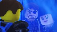 The Ninja, Bentho, and their other allies soon faced the attack of Wojira and Kalmaar's forces, with Jay employing a new car in the defense. Unfortunately, his vehicle was soon wrecked and left underwater and leaking, and Jay nearly drowned before being rescued. Water had entered his lungs as a result, and Nya was only able to save him by replicating her ancestor Nyad's sacrifice and merging with the ocean. Though still weak, Jay insisted on following Nya to her confrontation with Kalmaar and Wojira, and looked on in horror as Nya was apparently vaporized.