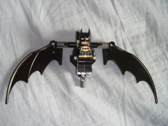 It has four guns, a missile launcher, and a glass cockpit. It is flat at the wings. At the end of the plane is Batwings. The Plane itself resembles a bat, as all Batman's vehicles do. It is used to stop crime in the sky such as The Joker's Helicopter.