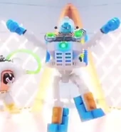 He was redesigned in 2013 with the Atlantis diver helmet in sand blue and a light-blue visor. His face is still white but now his blue eyes are revealed, as he is not wearing goggles, more lines to give the face detail, and an angry expression. His torso, hands, and hips are black with machinery printed on the former. He has back printing depicting the machinery on his back. His limbs are blue.