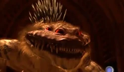 Nexu are large feline/rodent-like carnivores. They have four eyes, a bi-tail, grey and black stripes, a large smiling jaw of fangs, and sharp claws. A Nexu was used during the execution on Geonosis in Star Wars Episode II: Attack of the Clones, the Nexu's main prey was Padmé Amidala, whom the Nexu scarred in the back.