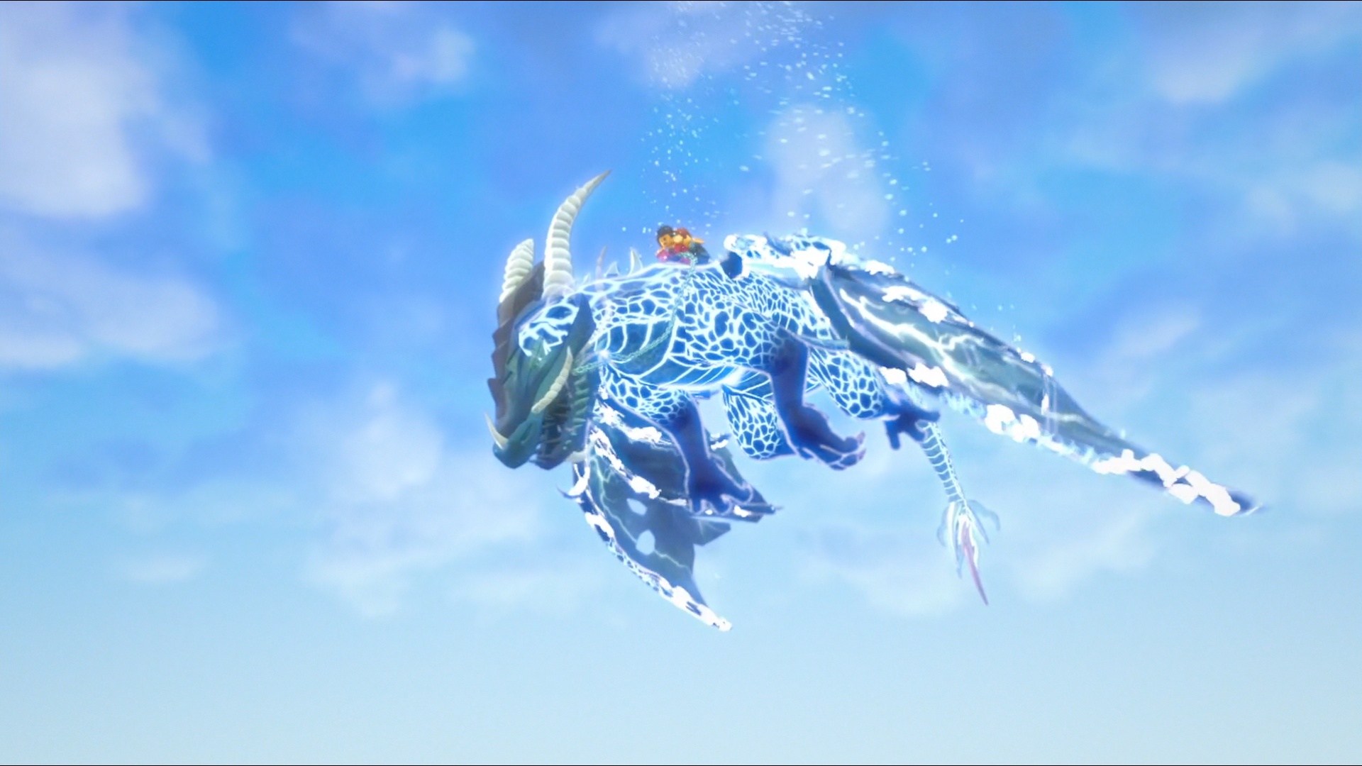 In "Wishmasters", Nya joined her powers with a weakened Jay in order to summon a more powerful version of his Lightning Dragon, allowing them to escape the Sky Pirates.