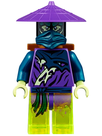He is built identically to Wail, except that Wail doesn't come with a backpack piece. His torso was also used for Attila, Hackler, Ming, Spyder, and Yokai. His legs were used for all legged variants of Ghost Warriors except Morro, Bansha, Soul Archer, and Wrayth. His hat and face mask, which have appeared in various colors throughout the Ninjago line, appears in the same colors on Cowler, Cyrus, Ghoultar, Ghurka, and Pyrrhus.