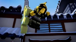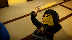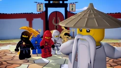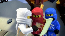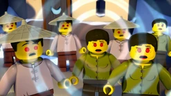 Lloyd tries to terrorize the village to rob them of their candy, and threatens to release the "Serpentine" on the villagers, but instead is run out of town by the ninja. Before returning to the Monastery, Kai discovers he has accidentally taken Sensei's bag in the rush, and finds a scroll that tells of the prophecy of Ninjago; one ninja will rise above the others and become the Green Ninja destinated. None of them are able to contain excitement, boasting to the others that himself will become the green ninja.