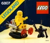 Space Police was the next theme to receive a makeover, remodeled into its more widely recognized black and grey with green canopies and red trim. The standardized jail cells were retained, though only three vehicles could accept them; the theme also lacked a permanent installation like Space Police I's 6955 Space Lock-Up Isolation Base (1989). It was the first Space set to replace the LEGO standard smiley face minifigure head with a more complex graphic (in this case, the face augmented by a fringe of hair and an ear-mounted microphone). Finally, Space Police II ships were known for being under-armed; several vehicles sported no overt weapons (such as the 6813 Galactic Chief, whose epaulet-wearing pilot is armed with only a hand-held blaster that might actually be a bullhorn), and the others featured only two small cockpit-mounted weapons (including the theme's heavyweight multi-module spaceship, the 6984 Galactic Mediator).