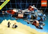 The first unified and truly themed Space theme, Blacktron took to the stars in black with yellow trim, and red and yellow transparent pieces. (The odd man out was the 1875 Meteor Monitor, which was white and black with red transparents.) Blacktron minifigures (or "minifigs" for short) wore black jumpsuits akin to today's military pilots, with white trim and opaque black visors. Stylish, sleek and intimidating, Blacktron was a major step up from the rather clunky design values of Classic Space. It featured a large spacecraft, the "Renegade," which set the tone for all future big ships by splitting into a number of smaller modules, including a storage bin for a small wheeled vehicle; these modules could be recombined not just with each other, but with modules from other vehicles in the set as well, specifically the "Invader" and "Battrax." This modular interchangeability has been a staple of LEGO Space ever since. Oddly, they weren't always symmetrical. Their large base, the Message Intercept Base, featured many large transparent yellow parts unique to the set. Many of the trans yellow parts from the theme were not used outside of the theme. The Blacktron's torso also appeared on Rench.