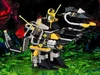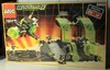 Taking the "good guy" role was another four-set theme, Roboforce featured various large robots (arguably mecha) in varying colour schemes. Orange Class features a police-like patrol function in humanoid robos, equipped with buzz saws for extracting criminals or rescuing civilians. The "head" of each robo was also a small space ship that could be used as an escape pod or secondary vehicle. Green Class featured a more military theme with animal shaped robos. The Robo Raptor was the only set not to feature a space craft, while the Robo Master's small spacecraft strongly resembled the Unitron Star Hawk II as a tribute to the fan favorite set. Roboforce "Robos" were powered by "secret" "robo disks" which were oddly enough rectangle-shaped power sources. By this time, the theme was well and truly exhausted, and the remaining sets were a slow march to the theme's obscurity.