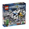 The Space Police ships had the same color scheme as Futuron, but their weapons were Trans Green. Their largest ship is reminiscent of previous space-ships, such as the Deep Freeze Defender in as that it is designed so that sections can be removed or replaced easily. Their base was released in August, along with two more ships. The vehicles of the aliens tend toward Black and Dark Stone. If they have a sealed cockpit, they tend to have Smoke colored windscreens or Trans Yellow, reminiscent of Blacktron.