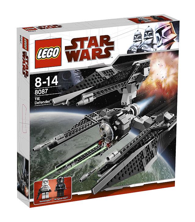 ![]() | 8087 | TIE Defender | 304 | Stormtrooper, TIE Pilot (New Helmet Design) | $49.99 / €49.99 | December 2009/January 2010'"`UNIQ--ref-00000001-QINU`"' |