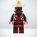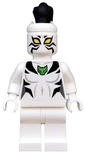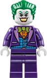 The Joker is the most drastically different from his minifigure, who mostly wears purple. As an Ultrabuild, however, he wears little purple, only having it on his shoulders, coat tails, lower arms, and lower legs. His other parts are a large variety of colours including gunmetal, bright green, and orange. He also carries a ray gun which uses colours such as transparent orange, white, and transparent neon green.