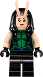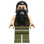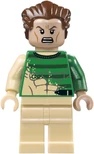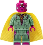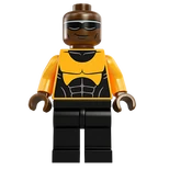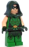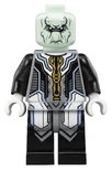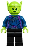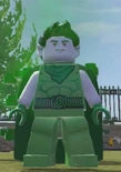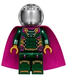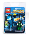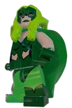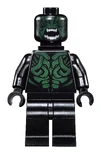 Green Lantern, who has only been promotionally released in his movie based costume, has bright green boots, shoulder pads, and chest, while his upper legs and lower torso are gunmetal, and his arms are gunmetal and white. Unlike his minifigure, who had no accessories in the promotion, Green Lantern wields a construct which takes the form of a morning-star weapon.
