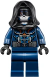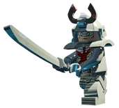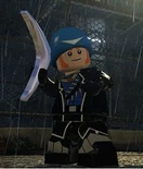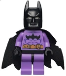 Batman is depicted as wearing blue boots, a blue cowl, blue sleeves, and blue over his chest, while everything else is gunmetal in colour, with the exception of his "cape" which is made of two long, curved pieces on either side of his back. Batman carries a sword, while in the sets he generally carries a Batarang.