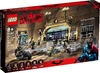 76007 Iron Man: Malibu Mansion Attack pits Tony Stark/ Iron Man protecting Pepper Potts and their white and grey mansion from The Mandarin and an Extremis Soldier in a grey, dark green, and yellow helicopter.