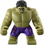 The Hulk is lime green, rather than bright green. Other differences are that he has gunmetal armor on his shoulders and waist, and that his shorts are blue, rather than purple or tan.
