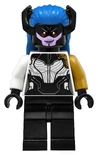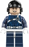 An aircraft that appears in 6868 Hulk's Helicarrier Breakout, also driven by Hawkeye, is dark blue with some light grey accents, but also with yellow accents and a transparent brown windshield. The interior of the Helicarrier, also included, has a floor that is different shades of grey in different parts, transparent light blue screens, a large, transparent container for holding Loki in the center, and white, black, and different shades of blue at different areas.