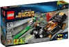 76000 Arctic Batman vs. Mr. Freeze: Aquaman on Ice features the Batboat in the same black and yellow colour scheme as the pervious year's vehicles and a white, trans blue, and grey ice prison. It also features Batman in an exclusive Arctic suit and Aquaman , the only non-Batman character in the winter 2013 wave.