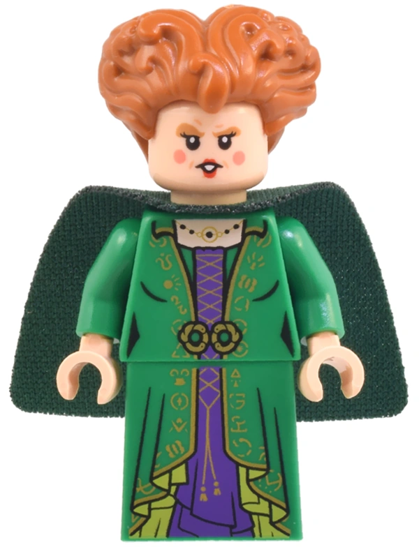 Winifred Sanderson is a Disney minifigure from the LEGO Ideas theme based on the character from the film Hocus Pocus.