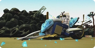 In Rise of the Nindroids, Zane appears in his Battle Damaged Techno Robe with his Techno Blade. Although damaged, he still has his normal face. He can be played by crossing a computer with himself on it, being chosen after getting a computer with all the Ninja, or by choosing him with a Wild Card. Zane can shoot shurikens with his Techno Blade, although it takes two hits to kill a Nindroid. He can also perform double-jumps. While doing a second jump, if Zane attacks, he can shoot four shurikens at once.