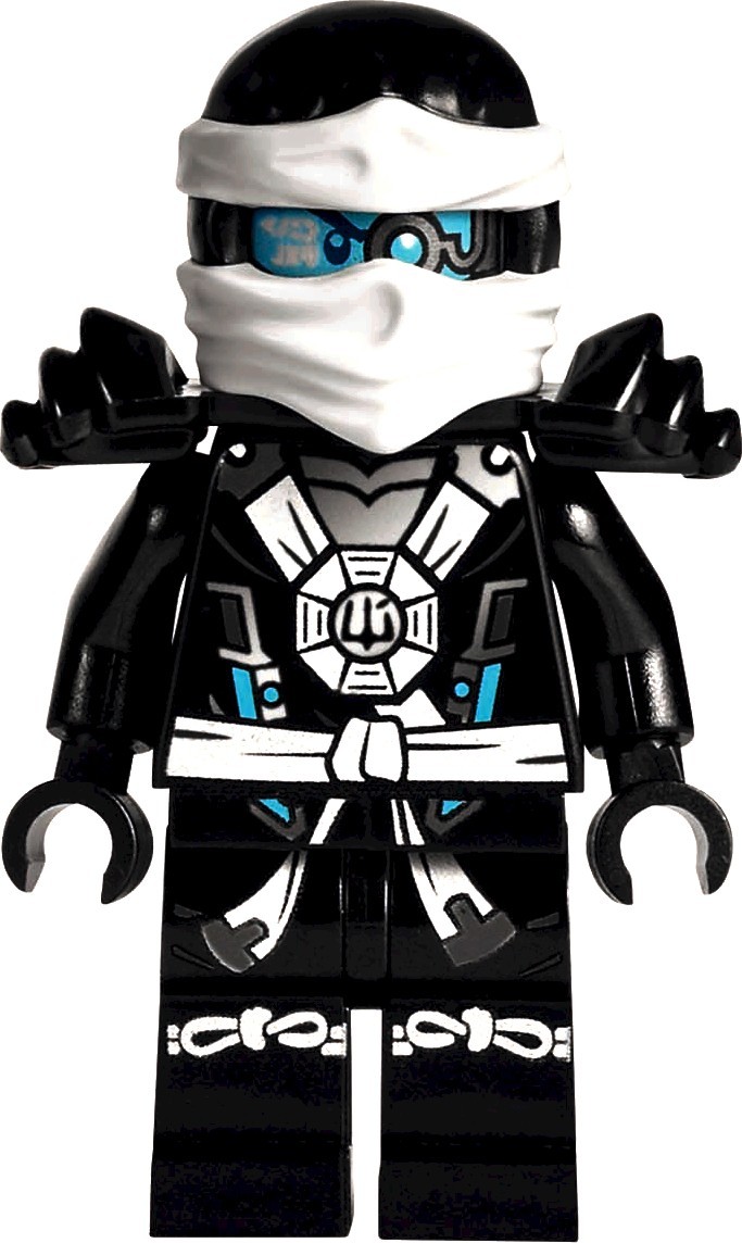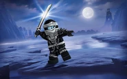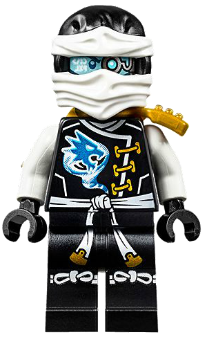 Zane's movie hood and head would be reused for his Spinjitzu Masters variant, which also incorporated Black Wu-Cru legs. His torso received unique printing, showing black robes apparently encrusted with ice created by Zane's elemental power.