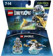 The silver version of Zane's movie hairpiece would also be used for his "Epic Battles" variant in 20201, which featured Zane's Titanium head and all new torso and leg prints. The arms for this figure would be all silver with light blue hands, and Zane would also wear a light blue half-mask.