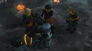- When Zane gets half of his face peeled off by The Great Devourer it resembles that of Saw Fist from Lego Agents.